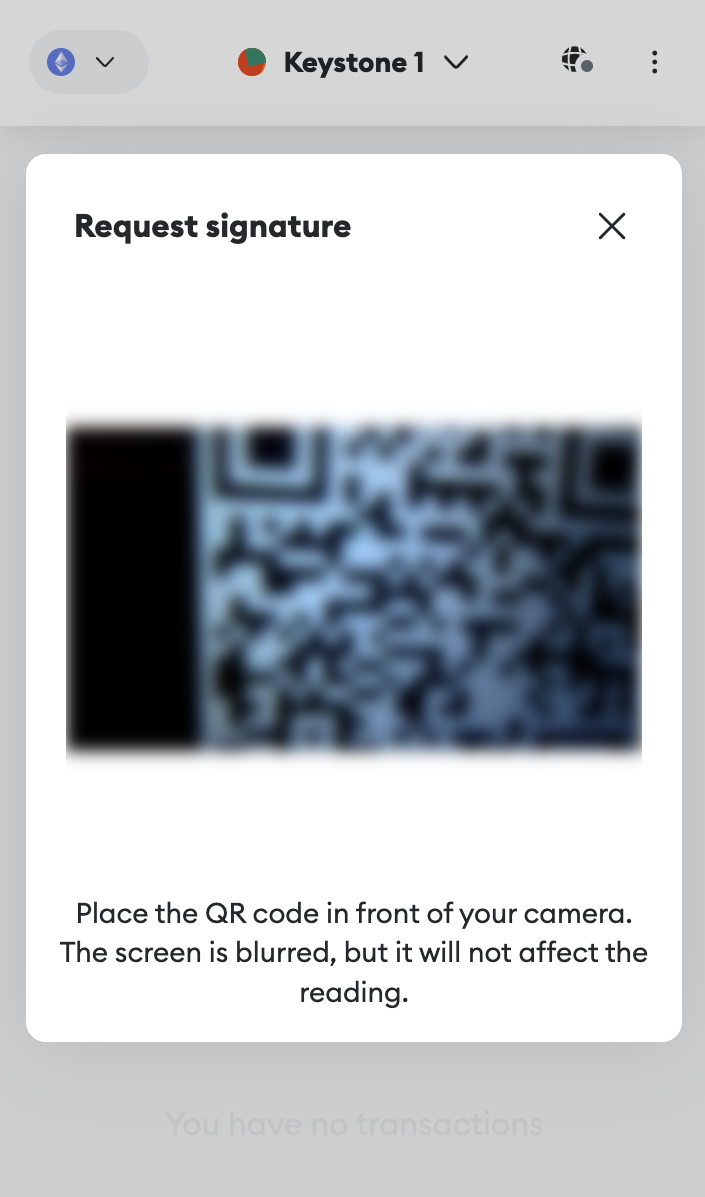 - MetaMask сгенерирует QR-код. Отсканируйте его с помощью вашего Keystone.