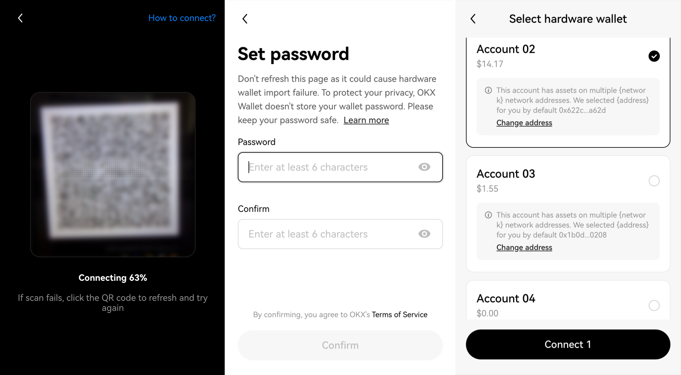 Разрешите OKX Wallet доступ к камере вашего устройства. Отсканируйте QR-код, отображаемый на вашем аппаратном кошельке Keystone.