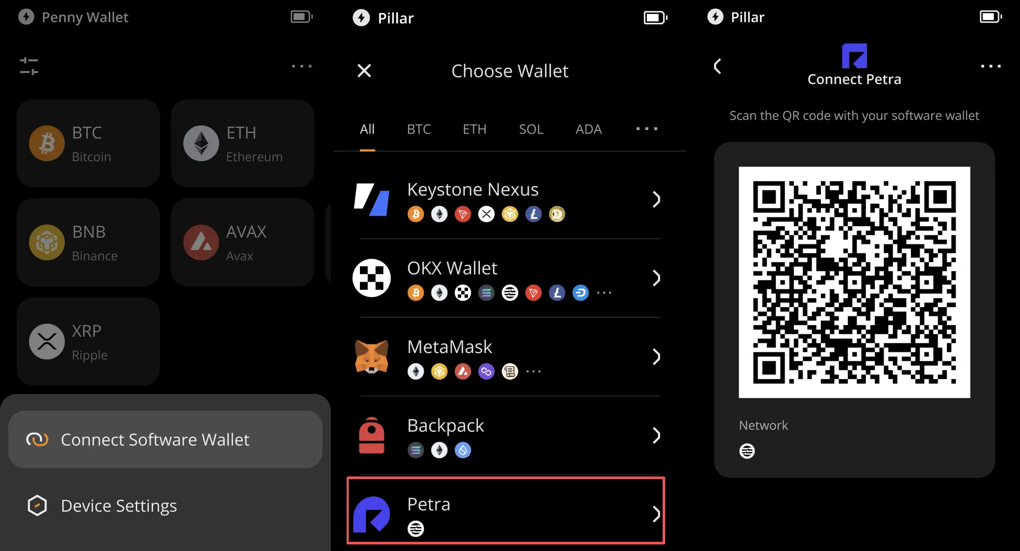 Привязка Petra к аппаратному кошельку Keystone