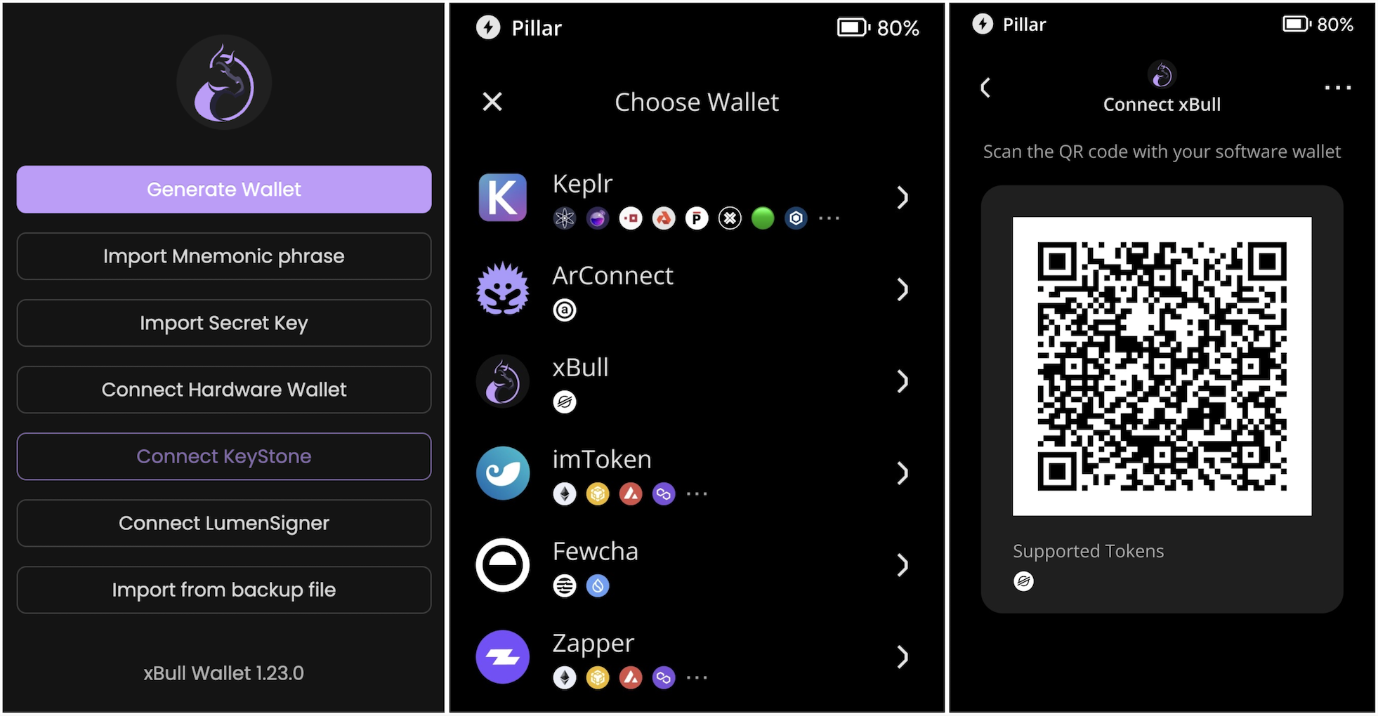 Если вы используете аппаратный кошелек Keystone, вы можете подключить его к программным кошелькам, таким как xBull, чтобы получить доступ к различным функциям в сети Stellar, включая отправку, получение и обмен активов, таких как Stellar Lumens (XLM).