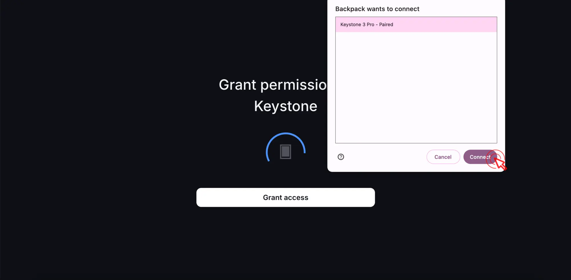 Предоставьте расширению разрешение на подключение к Keystone 3 Pro.
