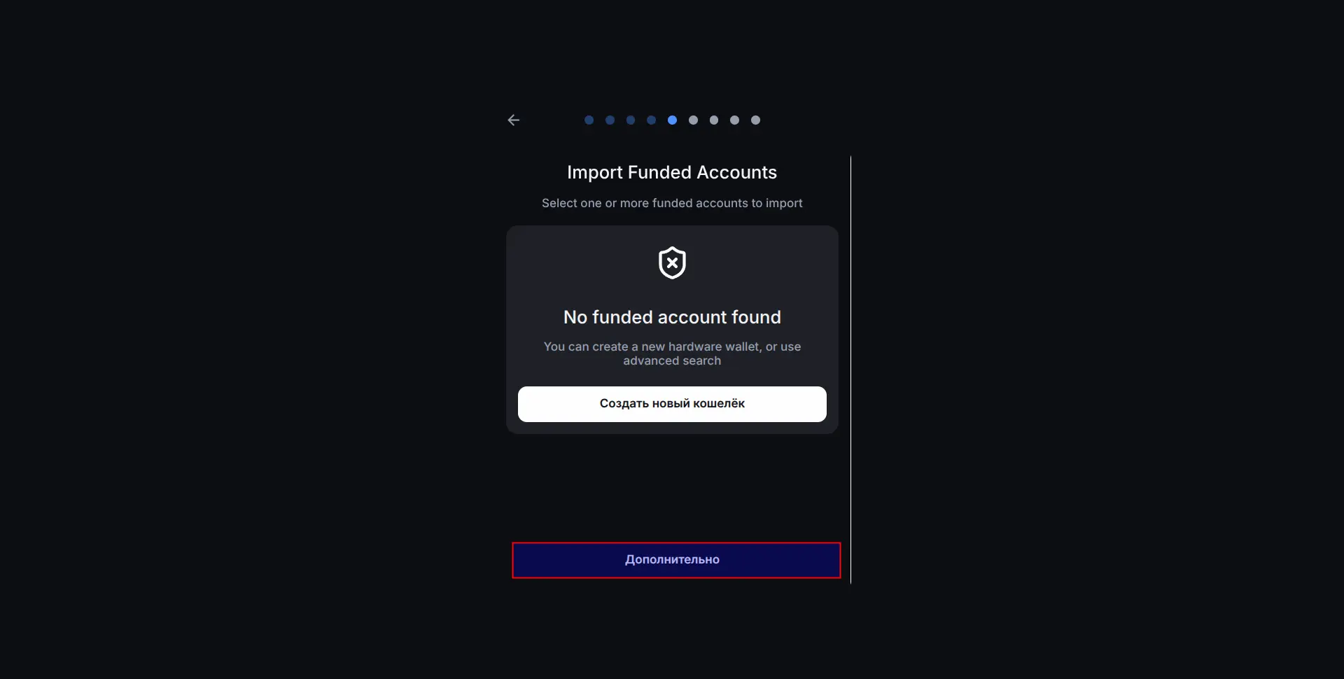- Нажмите [Дополнительно] на странице "Import Funded Accounts".