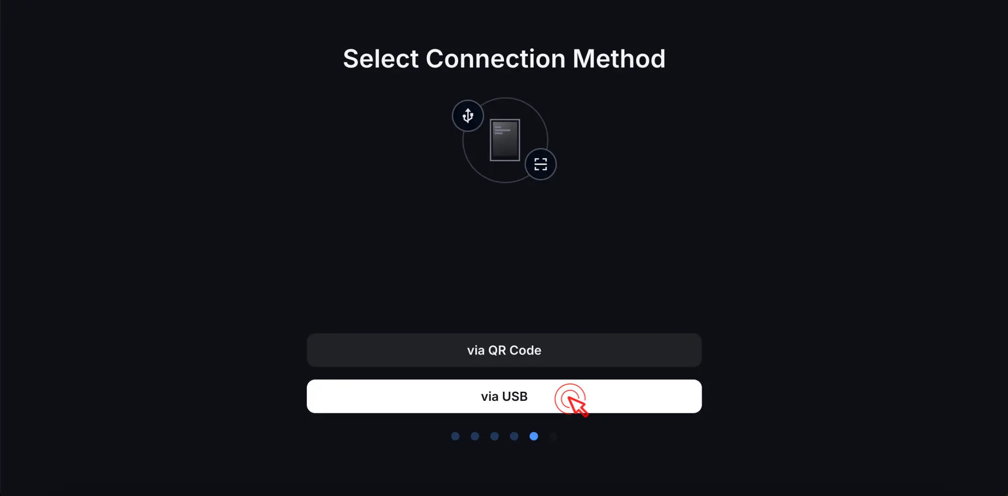- Выберите “Backpack” > На экране устройства появится QR-код для подключения к расширению Backpack.