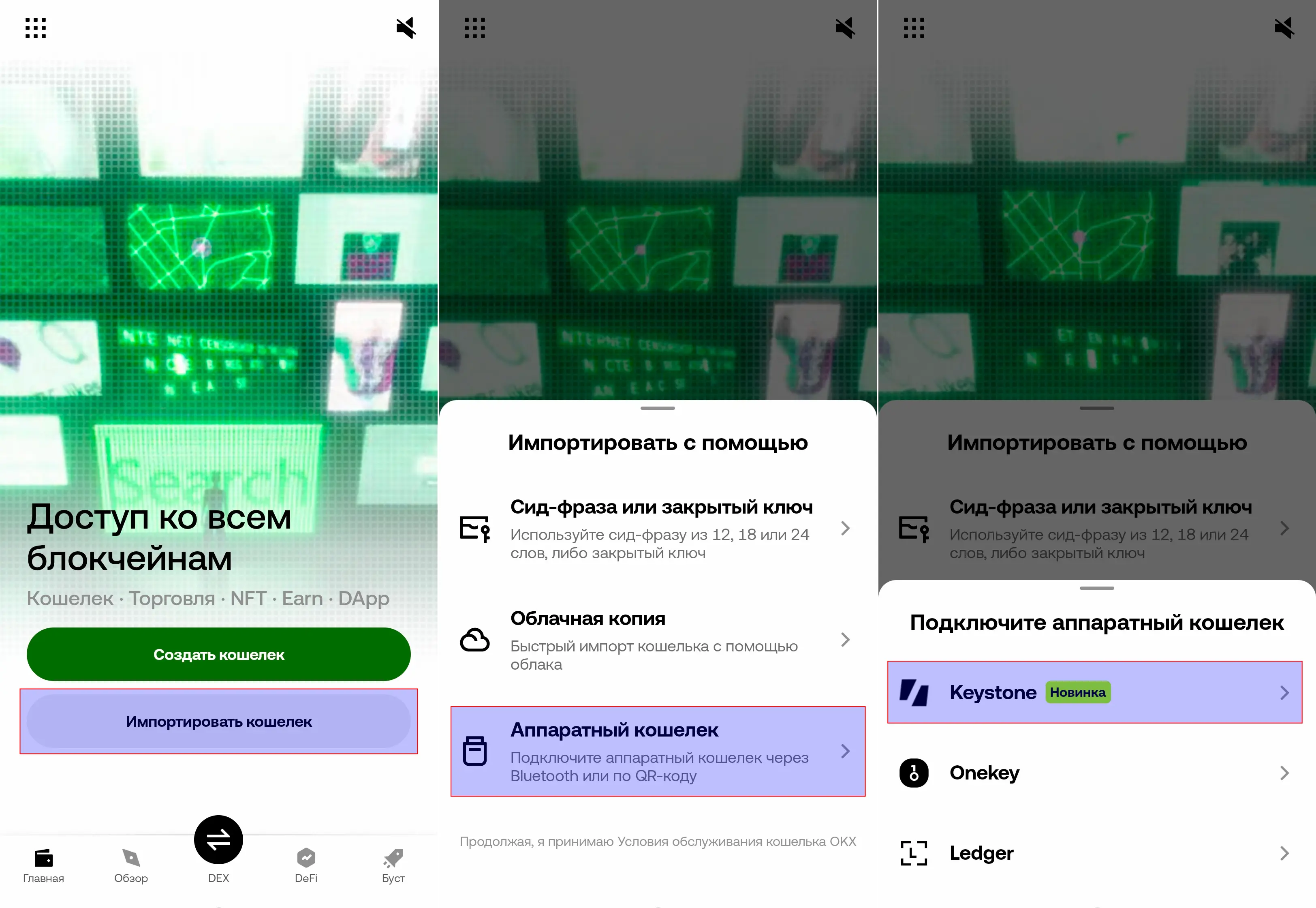 Теперь вы готовы подключить Keystone к OKX Wallet и изучить его возможности!