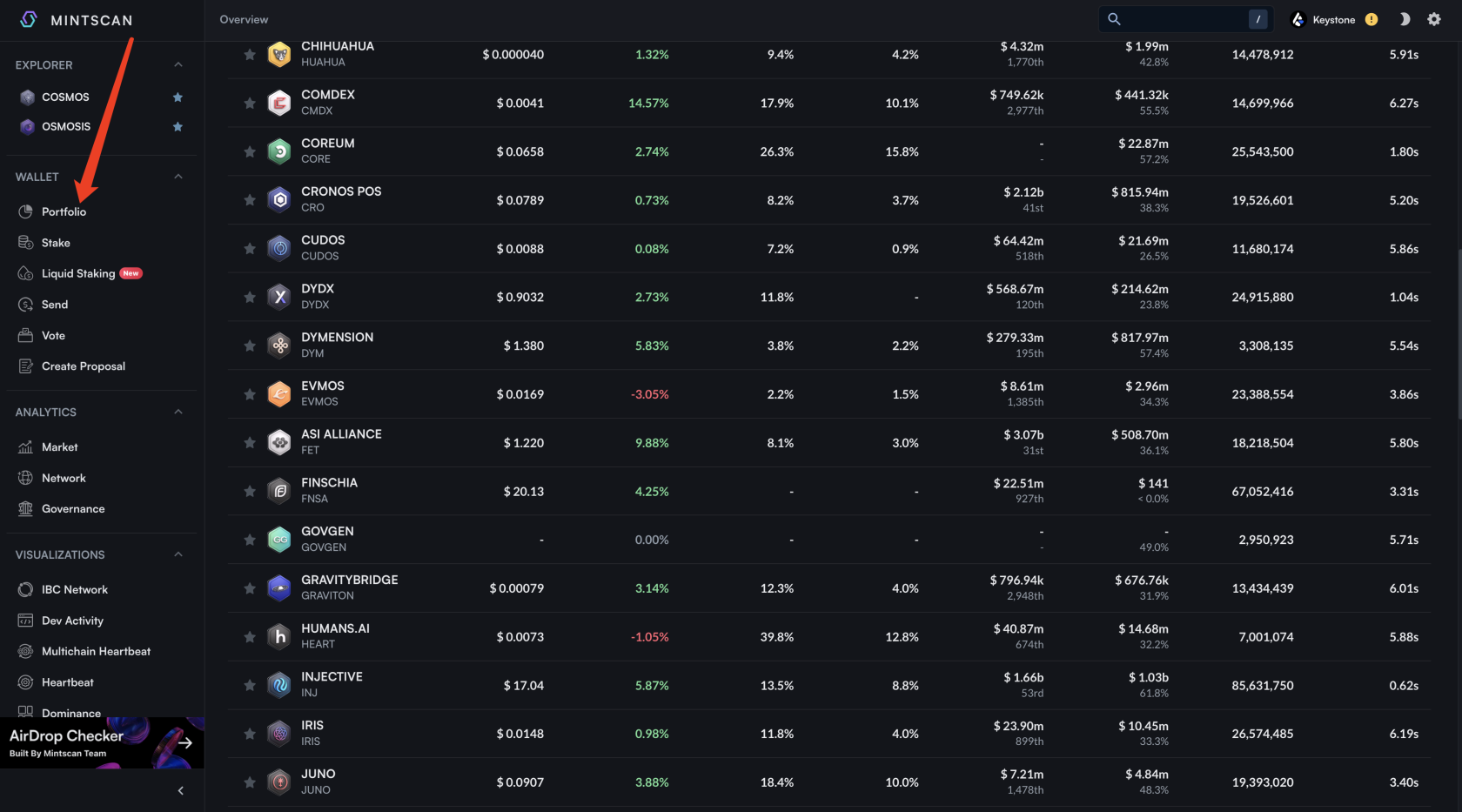 2. Привязка Mintscan к вашему аппаратному кошельку Keystone