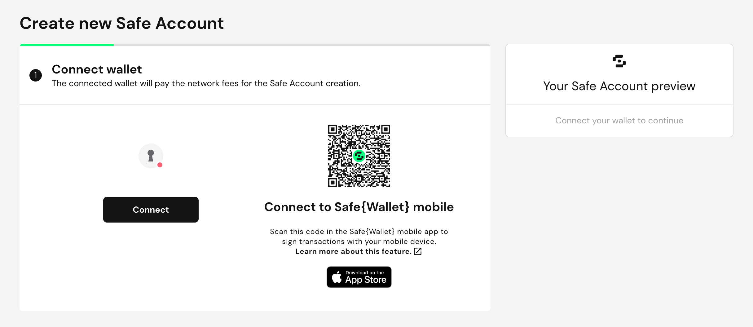 1. После входа в веб-кошелек Safe начните процесс, нажав [Создать аккаунт Safe].image.png