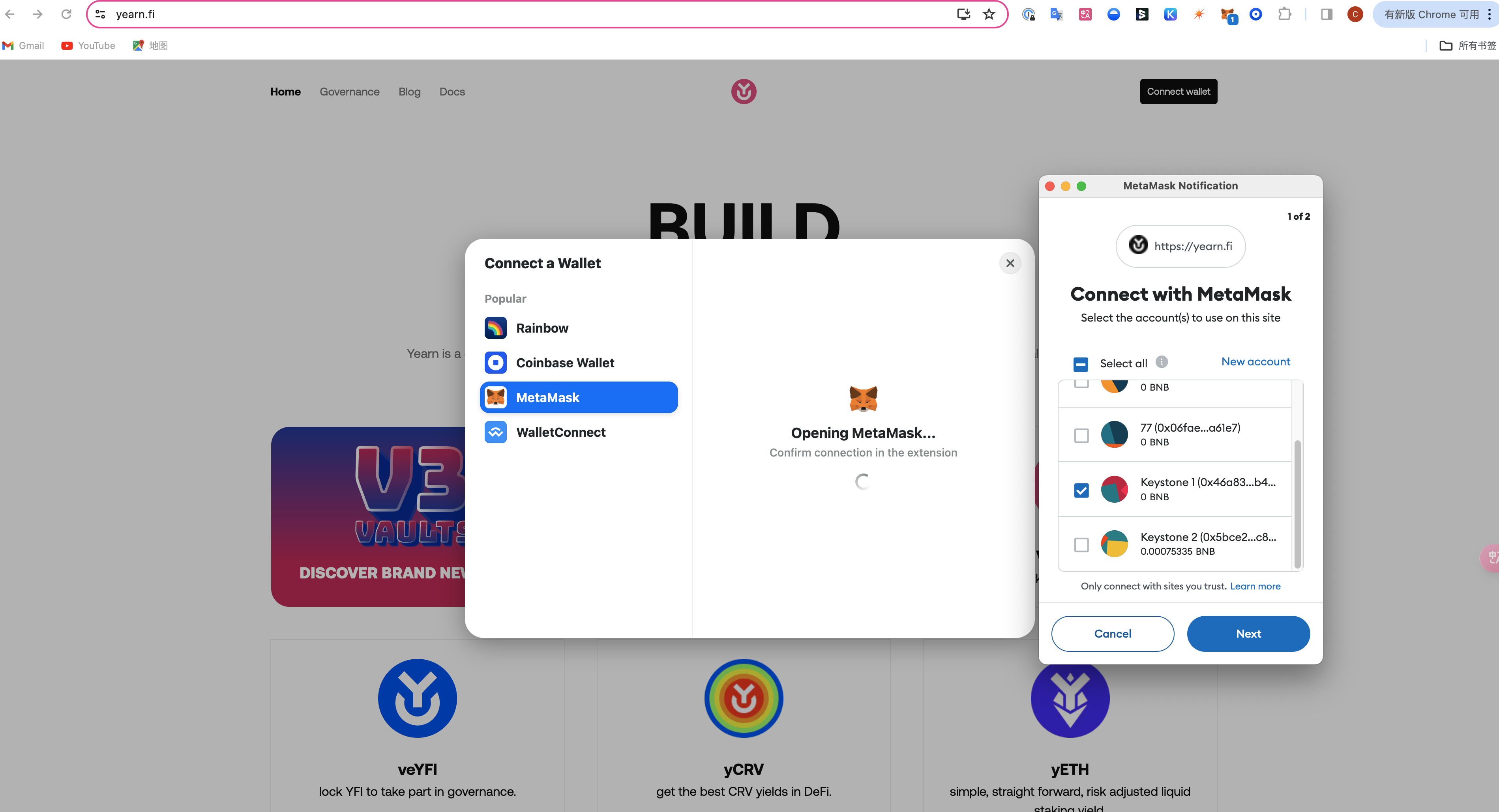 Это руководство объясняет, как взаимодействовать с Yearn Finance после подключения Keystone к MetaMask.