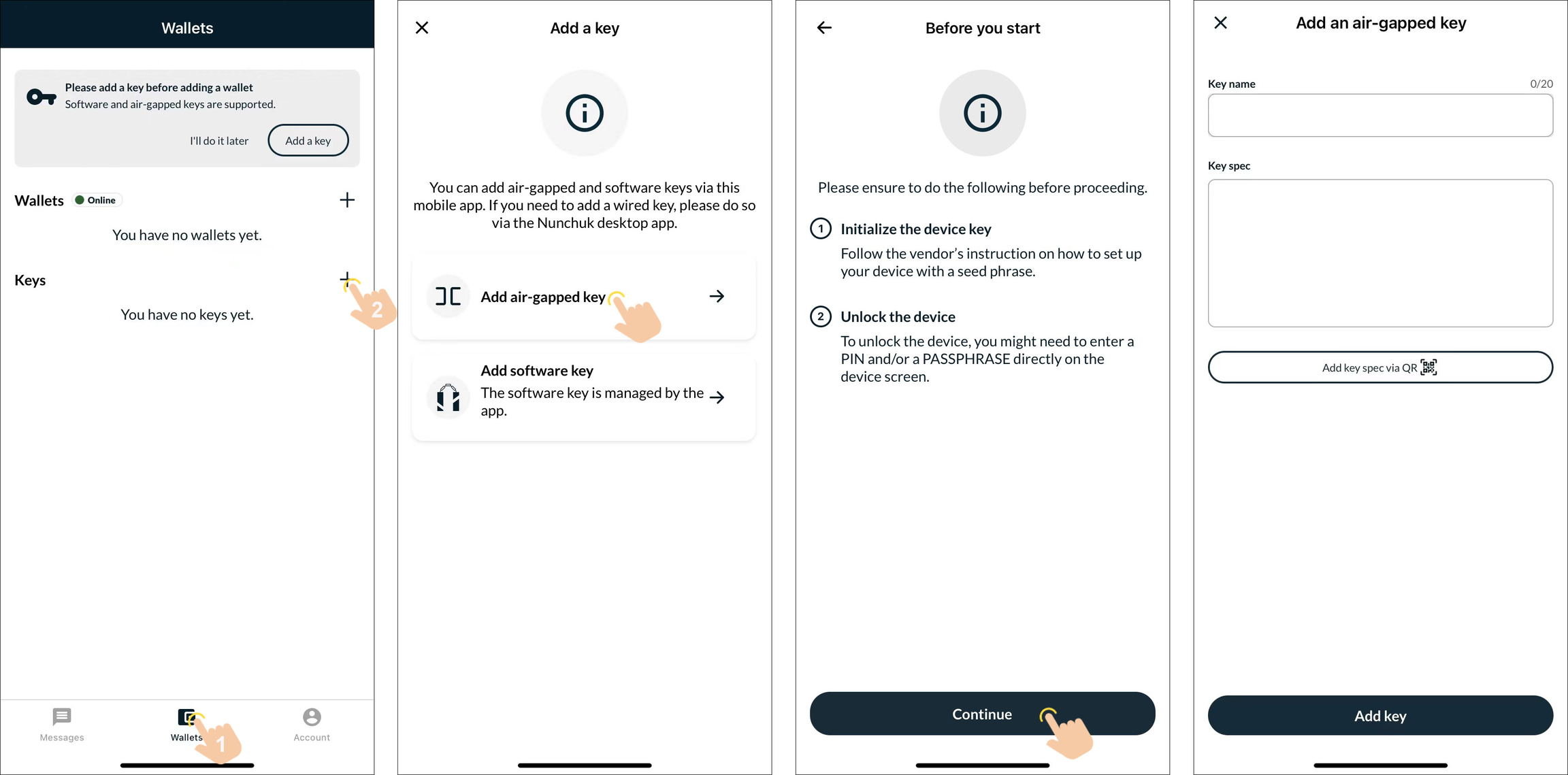 - Убедитесь, что приложение Nunchuk обновлено до версии V1.9.0 и совместимо с iOS 13.1 и Android 5.0 и выше.